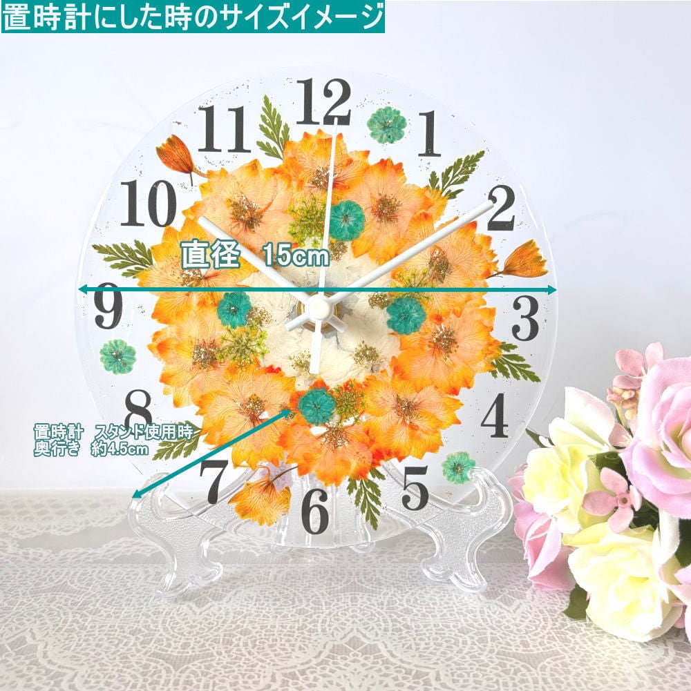✿花時計 【フラワーサークル・オレンジ】掛け時計・置時計 φ15cm ハンドメイド ギフト ボックス入り