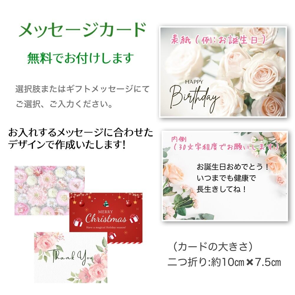 ・無料でメッセージカードをお付けできます。ご希望の方は選択肢でお選びいただき、内容を備考欄へご入力ください(30文字まででお願いします)。