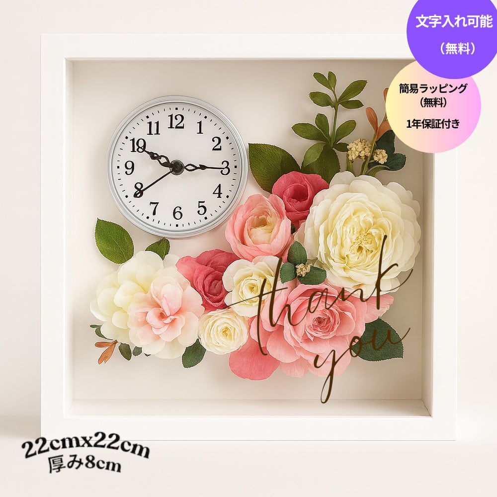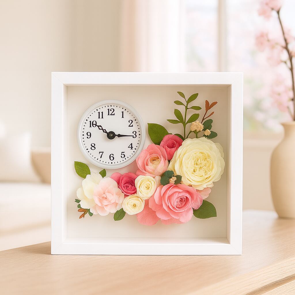 ◆花時計 【BOX FLOWER ブルーミングタイム】タイプA・ピンク 置時計 ハンドメイド 文字入れ可能