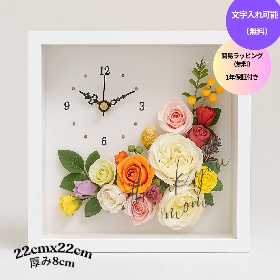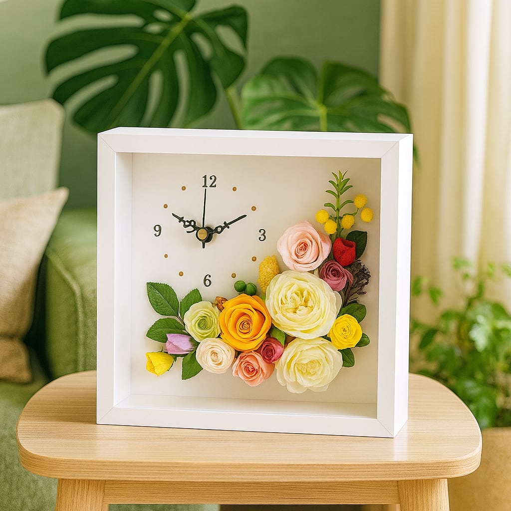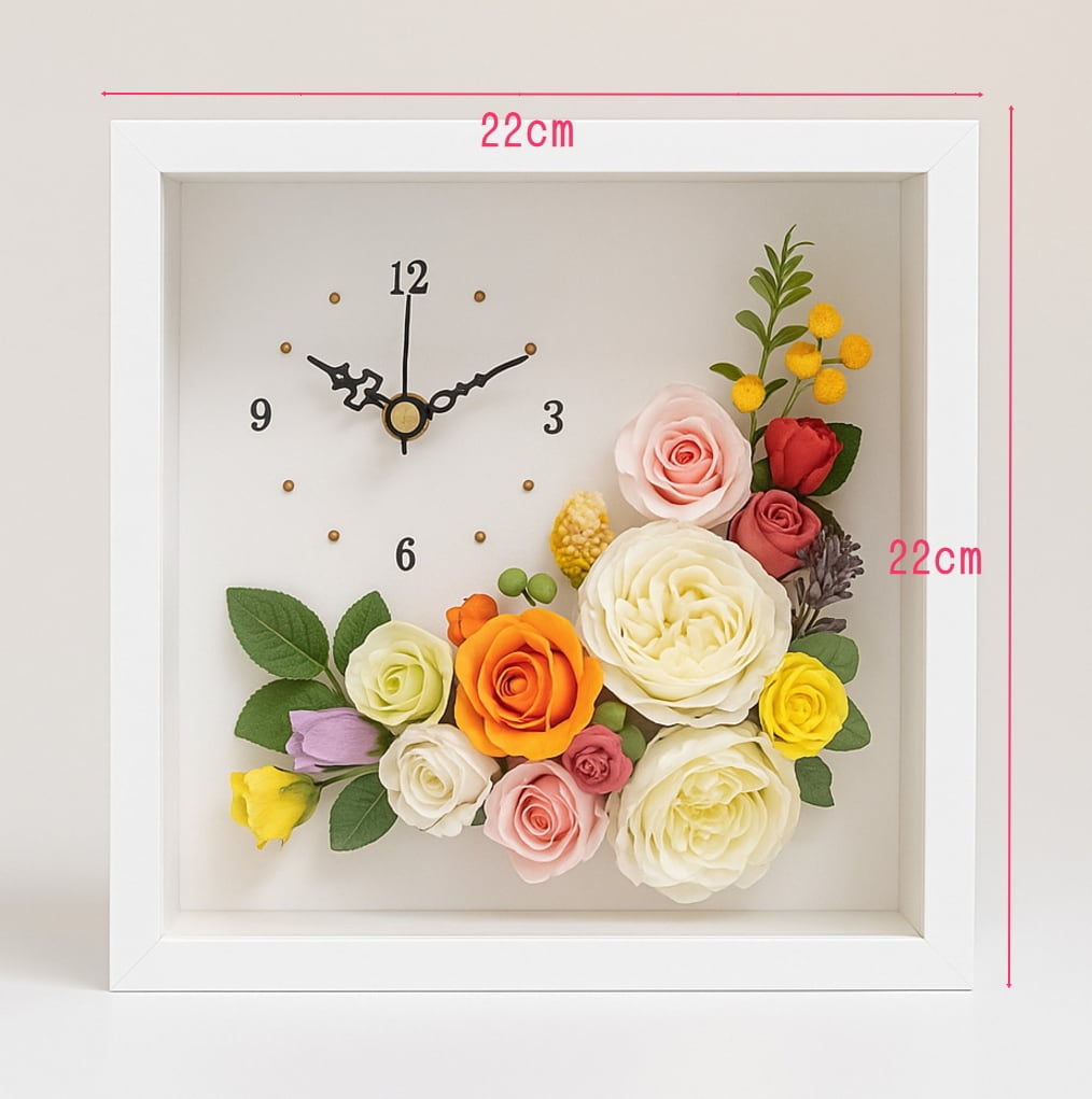 ◆花時計 【BOX FLOWER ブルーミングタイム】タイプB・ビタミンカラー 置時計 ハンドメイド 文字入れ可能