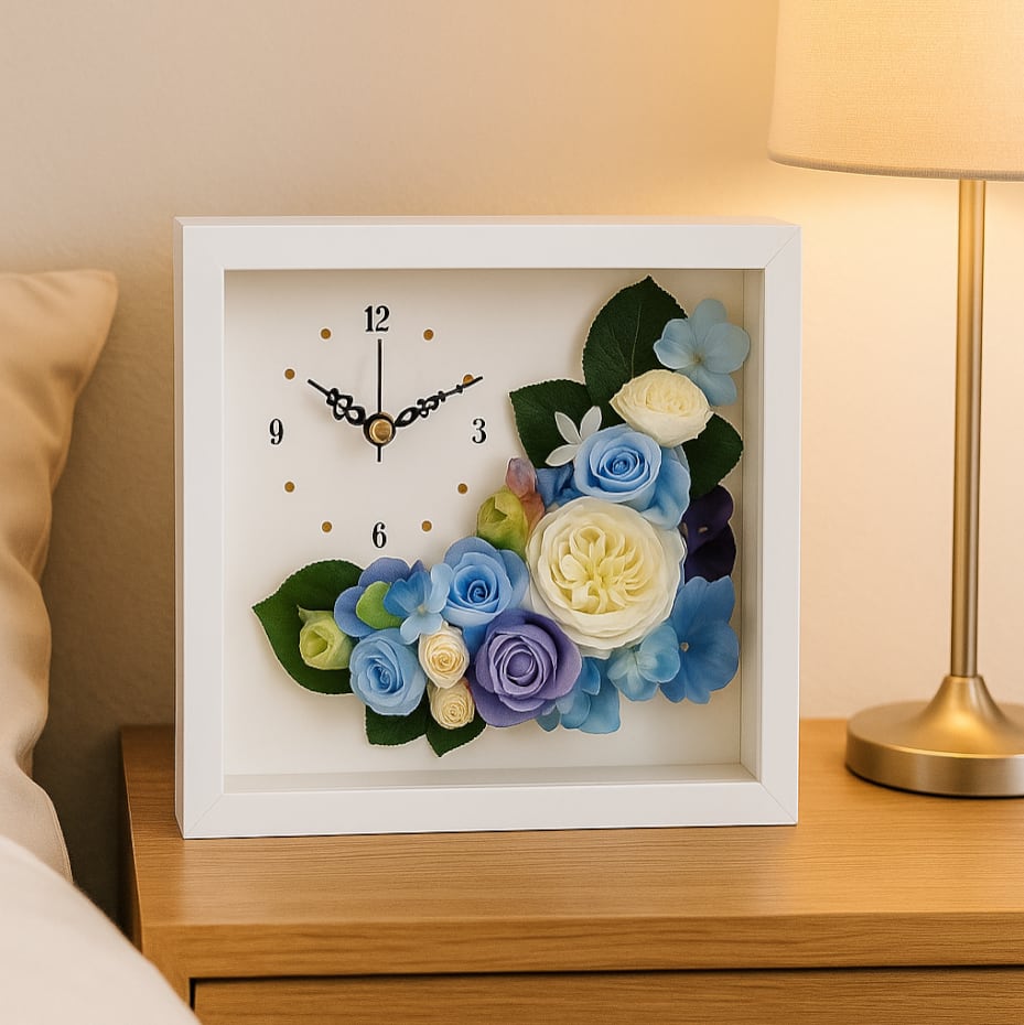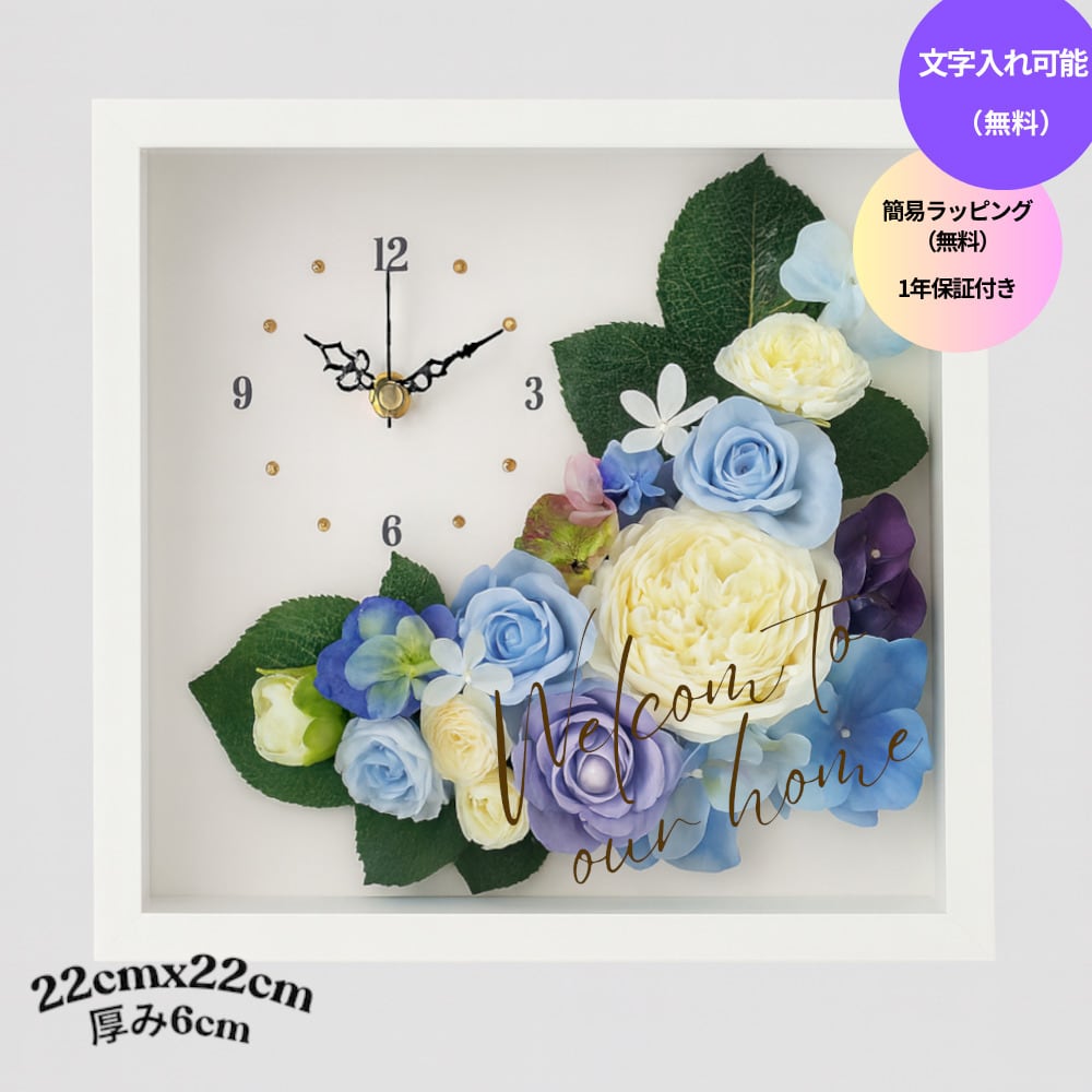 ◆花時計 【BOX FLOWER ブルーミングタイム】タイプB・ブルー 置時計 ハンドメイド 文字入れ可能