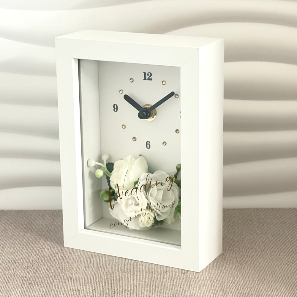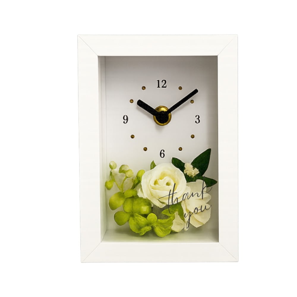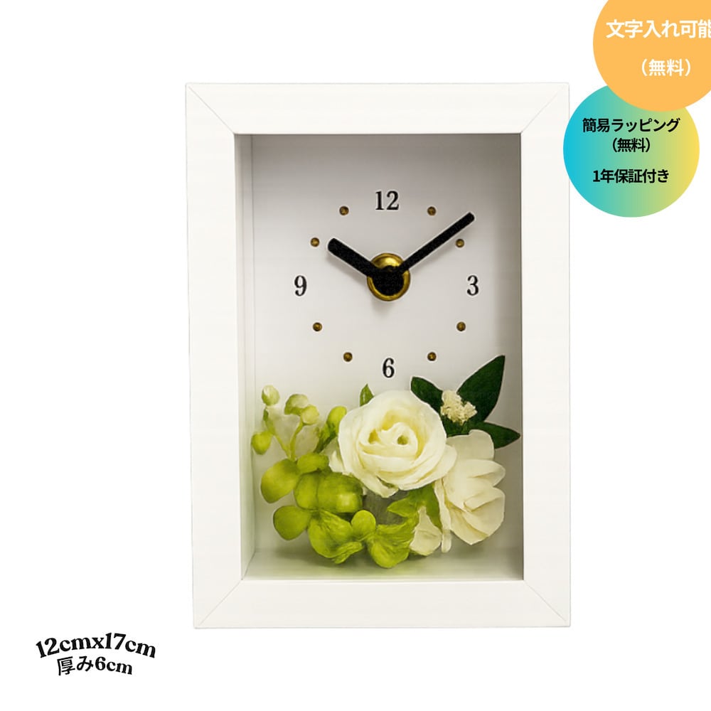 花時計【BOX FLOWER】 プチフルール ホワイト 置時計 ・掛時計 ハンドメイド 文字入れ可能 ギフト