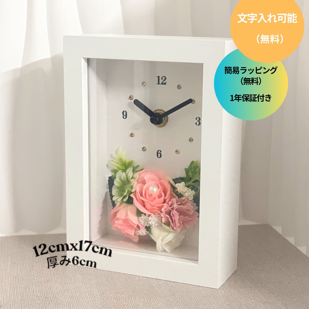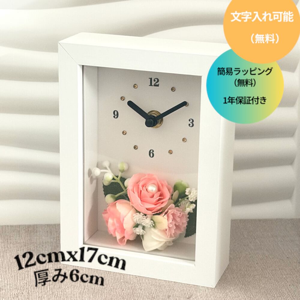 花時計【BOX FLOWER 】プチフルール ピンク 置時計 ・掛時計 ハンドメイド 文字入れ可能 ギフト