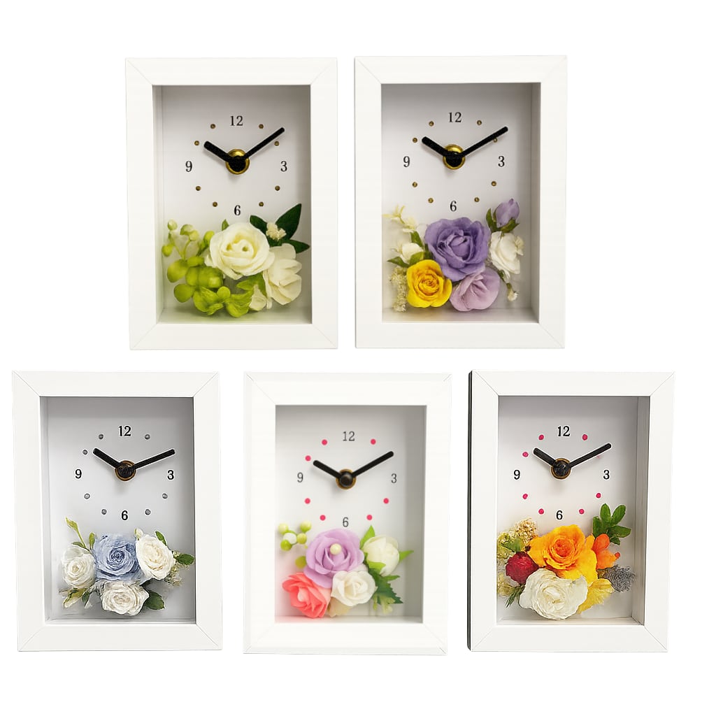 花時計【BOX FLOWER 】プチフルール ビタミンカラー 置時計 ・掛時計 ハンドメイド 文字入れ可能 ギフト