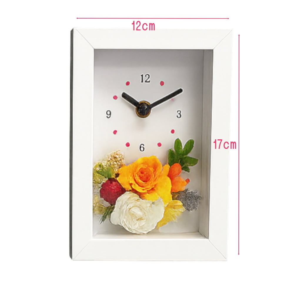 ・優雅な白いボックスにデザインされたこの置時計は、インテリアとして美しく彩りを添えます。アーティフィシャルフラワーは、どんな季節でも楽しめるお花を使用しており、長くご愛用いただけるアイテムです。