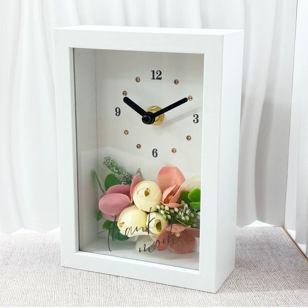 花時計【BOX FLOWER 】プチフルール ニュアンスカラー 置時計 ・掛時計 ハンドメイド 文字入れ可能 ギフト