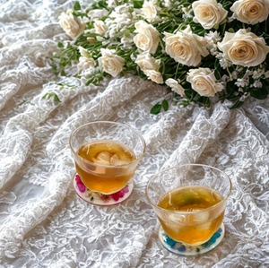 まるで小さな花のリースのようにテーブルを彩ります。グラスを置くだけで、日常のひとときが少し特別に。