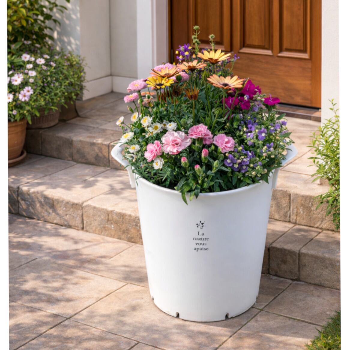 季節の寄せ植え La nature ハンドリーポット 内径24cm (ホワイト・4色展開)6〜7種類のお花で構成 鉢植え ラッピング不可 ギフトメッセージOK