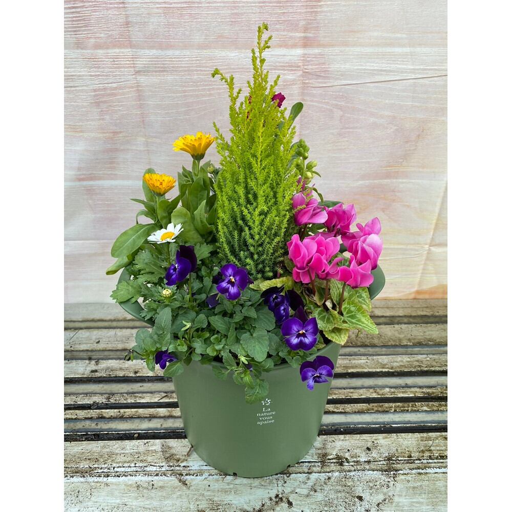 季節の寄せ植え La nature ハンドリーポット 内径24cm (グリーン・4色展開)6〜7種類のお花で構成 鉢植え ラッピング不可 ギフトメッセージOK