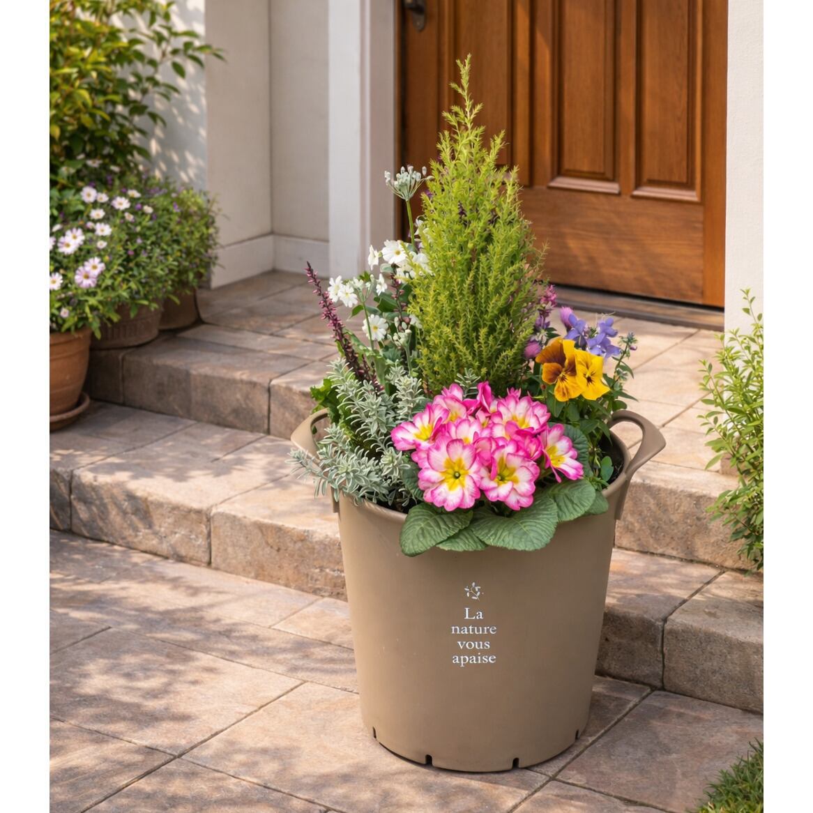 季節の寄せ植え La nature ハンドリーポット 内径24cm (シナモン・4色展開)6〜7種類のお花で構成 鉢植え ラッピング不可 ギフトメッセージOK