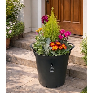 季節の寄せ植え La nature ハンドリーポット 内径24cm (ブラック・4色展開)6〜7種類のお花で構成 鉢植え ラッピング不可 ギフトメッセージOK