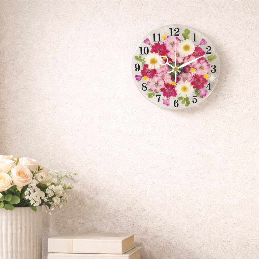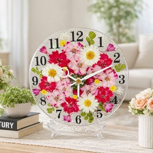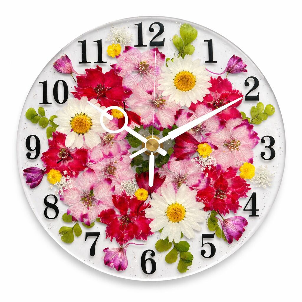 ・押し花をUVレジンでコーティングしたハンドメイドの花時計です。掛け時計・置時計どちらでもご利用いただけます!